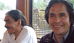 | Joe Martin (r) and his brother at the bakery in Tofino, on the "wild coast" side of Vancouver Island. Joe has made over 40 canoes (out of single cedar logs) in accordance with tradition passed down by his Nu-chah-nulth ancestors. |