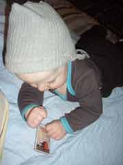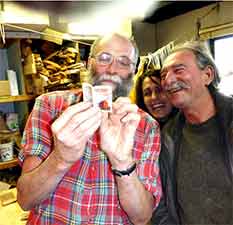 We printed these 2" x 2-1/2", 36-page mini books along with the big one. Are they cute! No kidding, 95% of the people I hand one to (which I do everywhere I go) laugh out loud. Not smile. Laugh. For a month or so we are including one with every book sold. (Photo at left, Godfrey Stephens; photo at right, Joel Glanzburg)