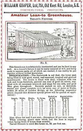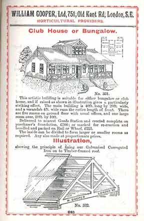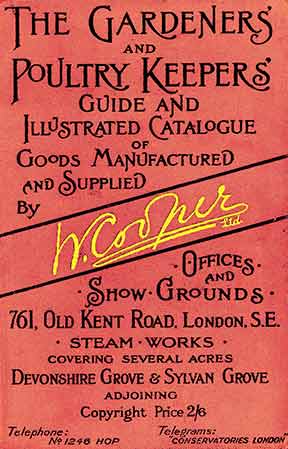 I found this little (5" x 7") gem in a small London bookstore in 1974 and have wanted to reproduce it ever since. The Cooper company manufactured prefabricated greenhouses, sheds, shacks, stables, kiosks, and rustic furniture in London around the turn of the (20th) century. These buildings were shipped all over the British Isles, and to British colonies worldwide. Not only is this catalogue a charming picture of turn-of-the-century country life in England, but the drawings - of greenhouses, chicken coops, barns and small buildings (with corrugated metal roofing and siding, very much in vogue these days) - were still relevant 100 years later. Here is a source of ideas for builders, architects, and homeowners - perhaps even more relevant in these days of rapidly depleting resources.
