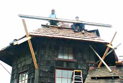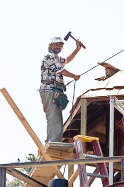 2009. Photo on right: Billy with shingling hatchet, July 1.