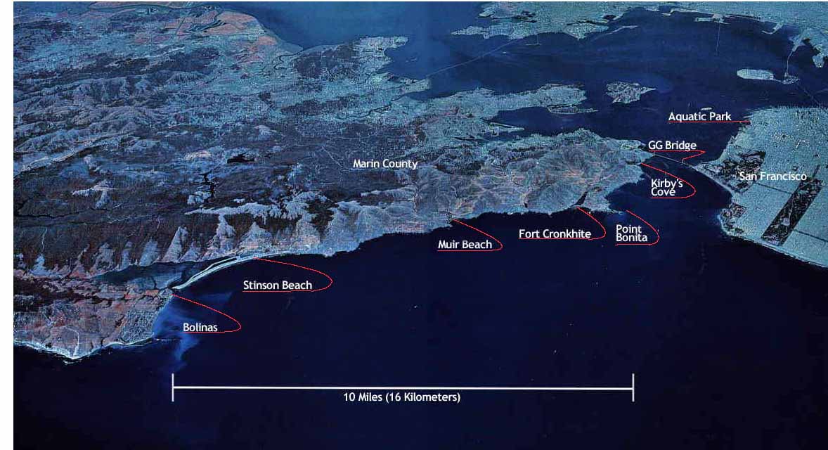 get up before dawn and I’m nervous. The plan is to paddle a kayak into San Francisco from Bolinas ( see map), something I’d been talking about doing for years, and for a variety of reasons, it’s now or never. Conditions couldn’t be better: the swell is small, the weather calm, I have a 16’ ocean kayak, my friend and kayak master Michael Jeneid had taken on a grueling test run earlier in the week, so here goes.