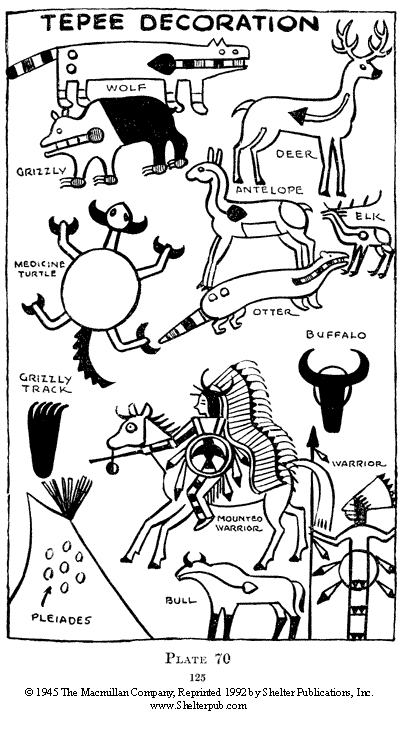 Here are pages of decorations to add to the teepee, and more decorations.
