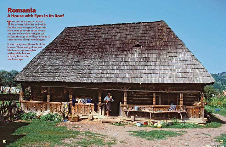| This village is in a clearing by a forest full of fir and oak in the Maramures region of Romania. Here, even the roofs of the houses are made of wooden shingles. As I walked through the village, I felt as if someone was always watching me.